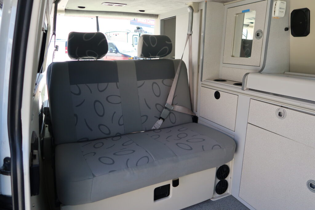 2013 Sportsmobile RB33 w/ only 46k miles.. This is the perfect beach rig! At only 20′ this little RV Sleeps up to 4 seats up to 6, Pop-top, Ford Econoline Chassis w/ 5.4L V8, 2WD, kitchen with sink, lots of counterspace, microwave, removeable table and leg system, refrigerator portable shower and pan, portable toilet, water heater, AC/furnace, sofa can convert into a bed, passenger front seat swivels, backup camera, brand new tires, new chassis battery manual awning and so much more…
